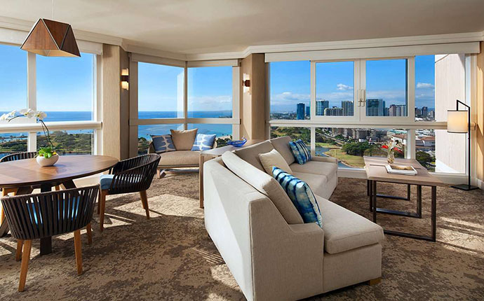 The luxurious, contemporary Prince Waikiki is considered the best hotel in Honolulu. Those who've been laud its oceanfront location at the crossroads of downtown Honolulu and Waikiki, steps away from the beautiful and pristine Kahanamoku Beach. Acclaimed local art adorns the hotel interior, of which the most eye-catching is a ceiling installation in the lobby comprised of more than 800 glistening copper pieces. All rooms and suites complement nature-inspired décor with floor-to-ceiling ocean views, while marble bathrooms, a Smart TV, a mini-fridge, and a coffeemaker ensure that you feel at home, away from home.